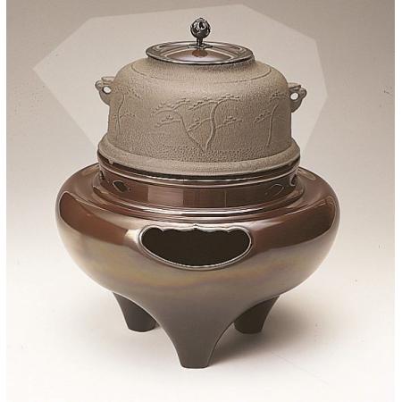 風炉釜 朝鮮徳色浜松地紋釜付