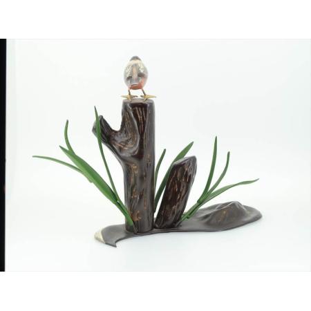銅製置物 木枝にカワセミ