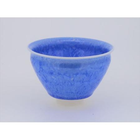 爽やかな青色に発色した結晶釉の抹茶?です。茶席を華やかに演出します。