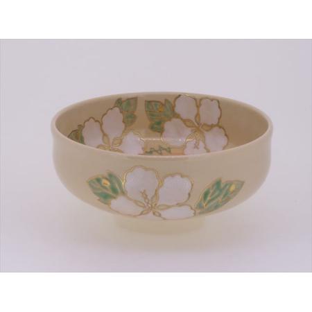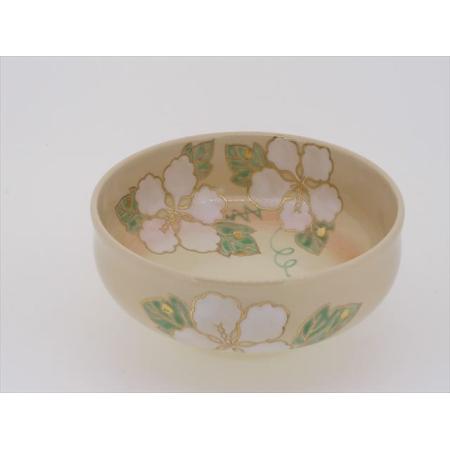源氏物語にもゆかりの夕顔の花を、優しげな色合いで描きました。御本手ではユニークな馬盥型の茶?です。