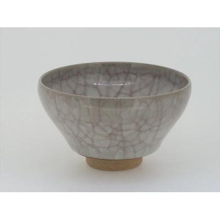 古典的な天目型の抹茶?に落ち着いた色合いの氷裂釉が馴染みます。使い込む程、味わいの増す器です。