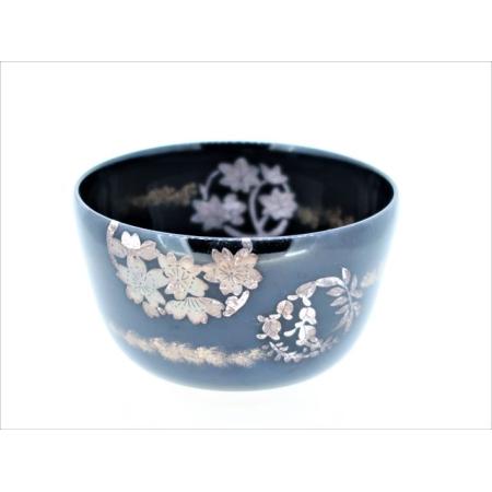 茶碗永豊 黒釉 銀彩 花丸