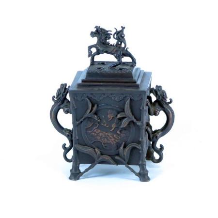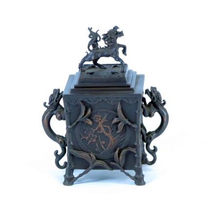 銅製  四角松竹梅香炉
