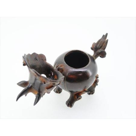 銅製  豆獅子香炉 茶銹◎