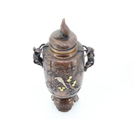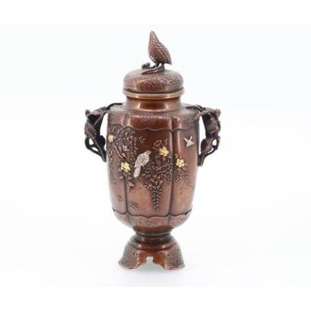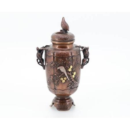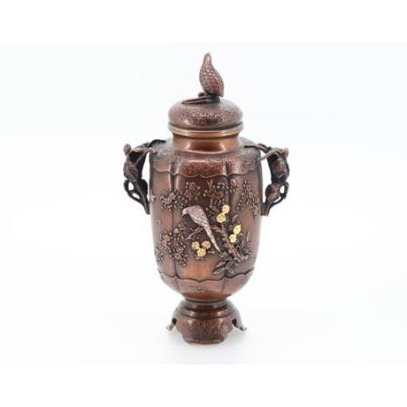 銅製  雷鳥蓋 花鳥香炉