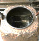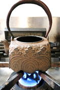手順2蓋を外した鉄瓶を熱源の上に置き、乾燥させます。この時にその場を離れないで鉄瓶の底を観察していてください。20秒ほどで水の膜が消えて乾いてきます。底の乾いたところが多くなってきたら熱源を止めてそのまま30分程度おきます |