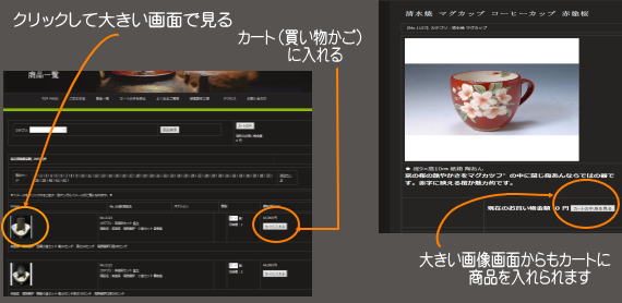 ご購入されたい商品がございましたら、各商品ページに設置されている「カートに入れる」ボタンをクリックしてください。