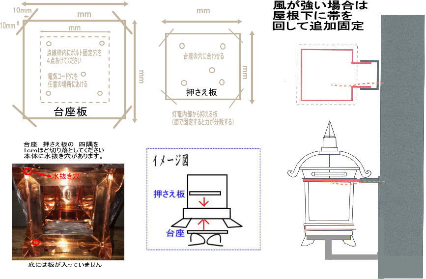 看板灯篭(軒灯)は本体渡しとなりますので取り付けアングルなどは施工側で用意していただくことになります。