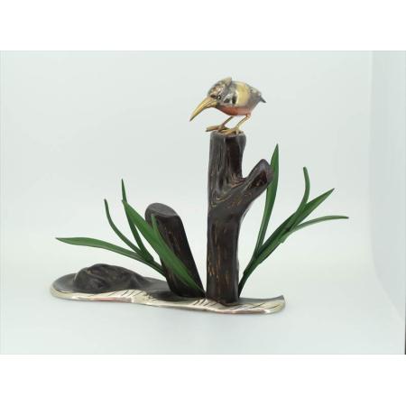 銅製置物 木枝にカワセミ