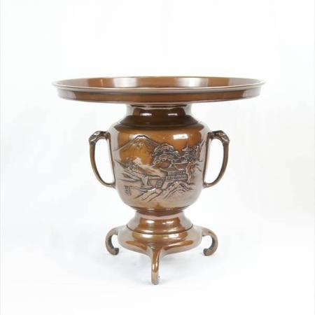 薄端 銅製 富士山水 煮色